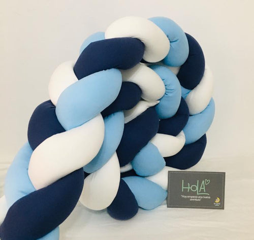 Bumper Trenzado Celeste - Azul Marino - Blanco